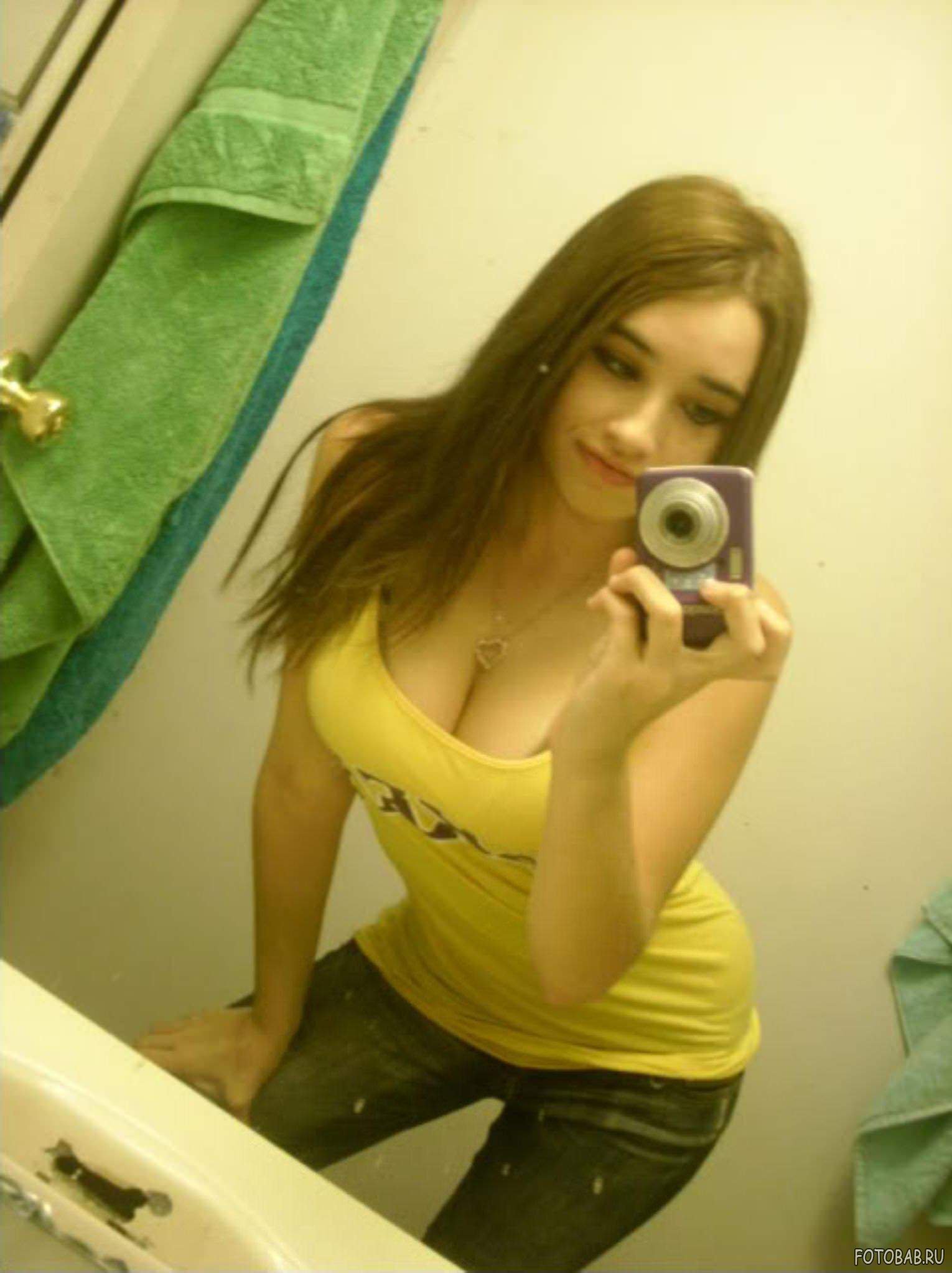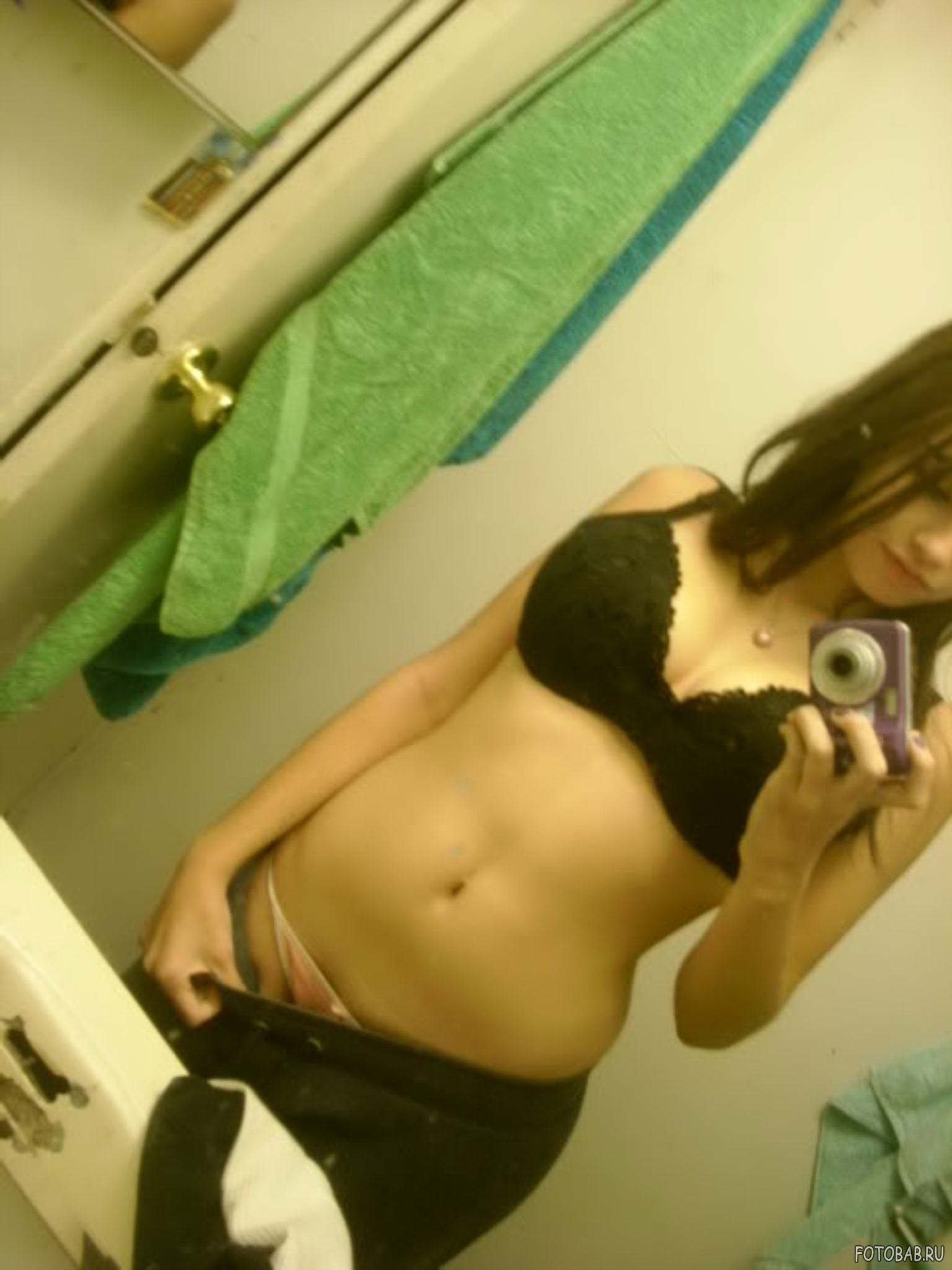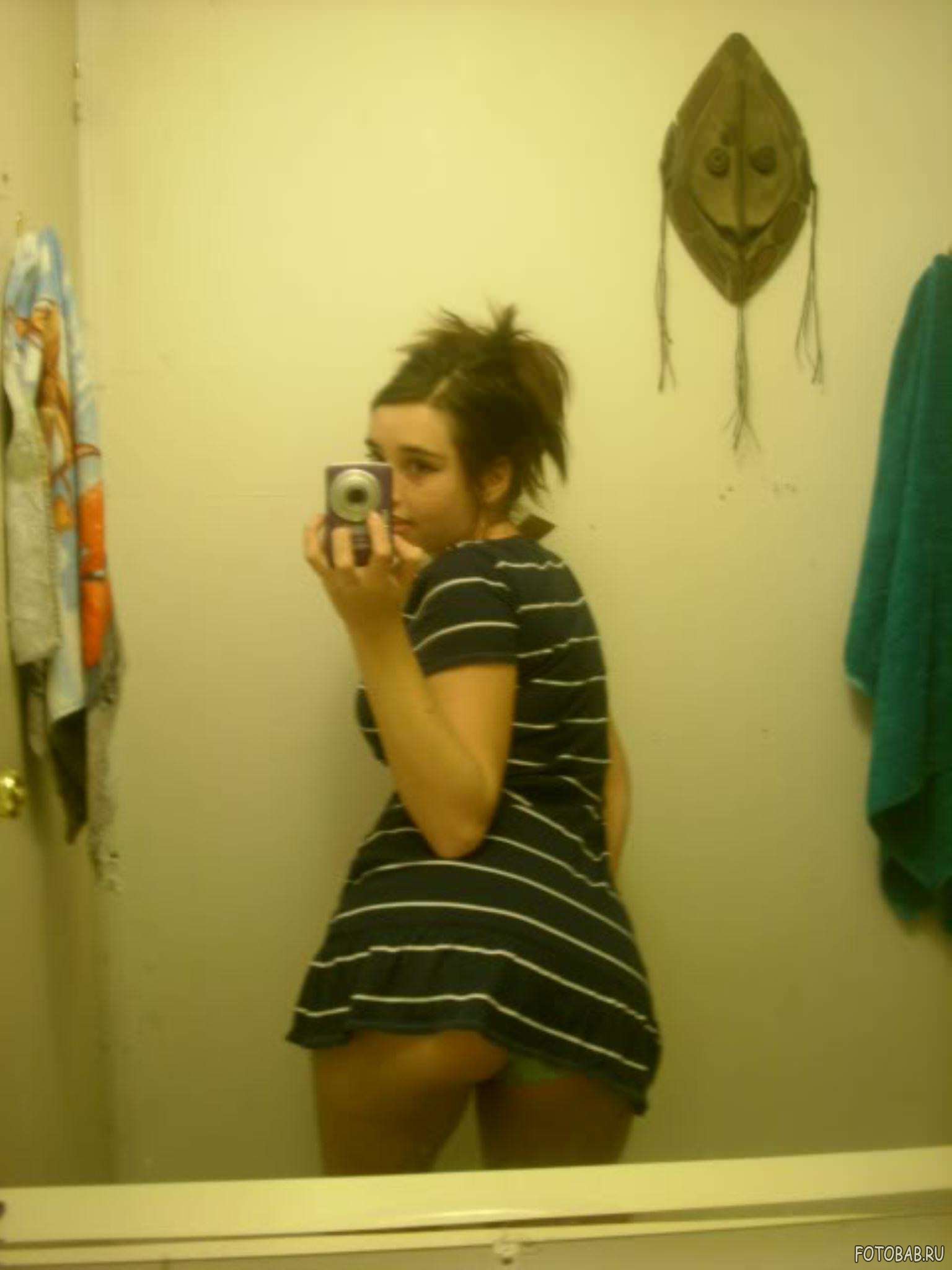 Молодая телка показала сиськи и письку в зеркале (30 фото)