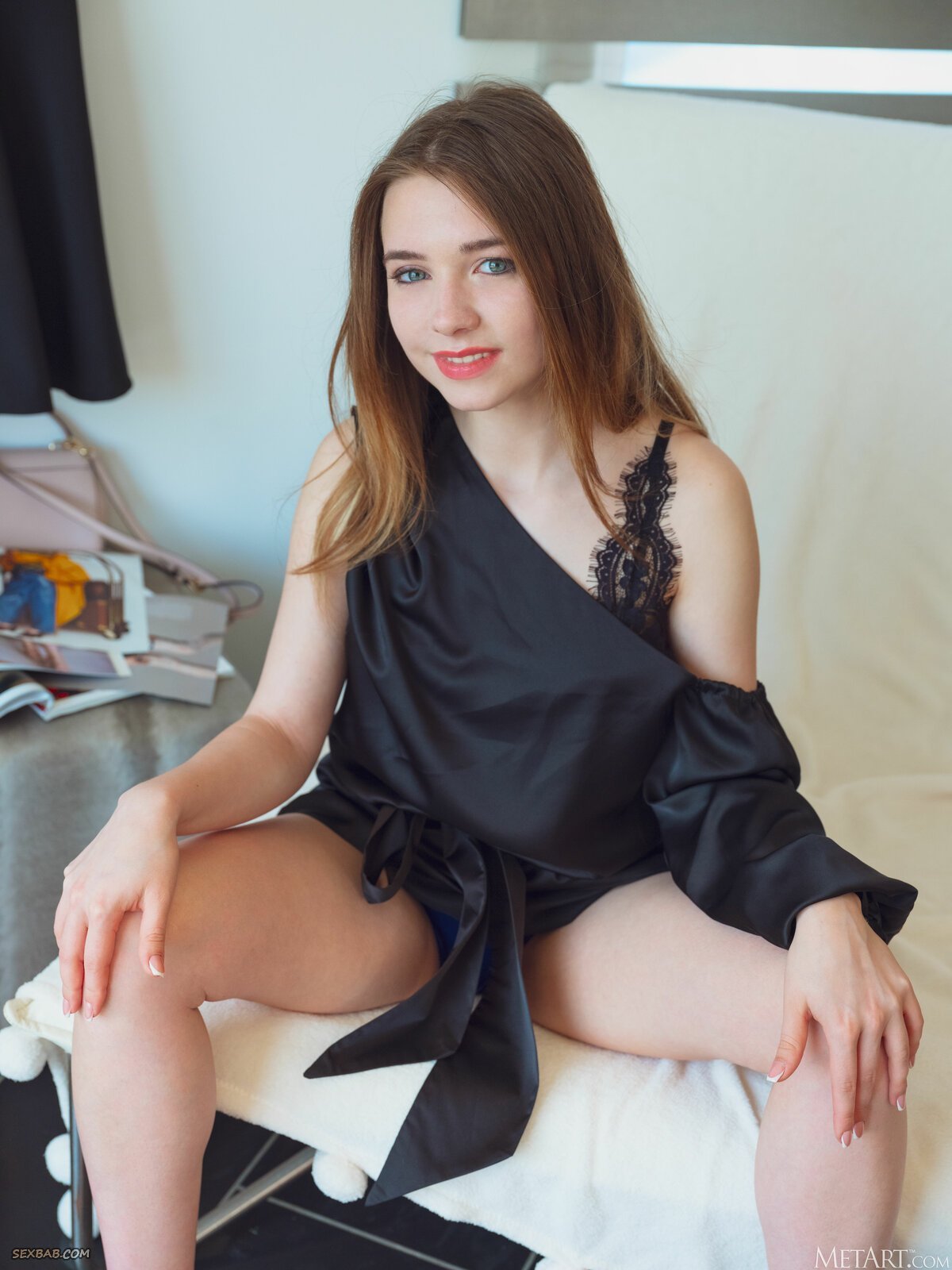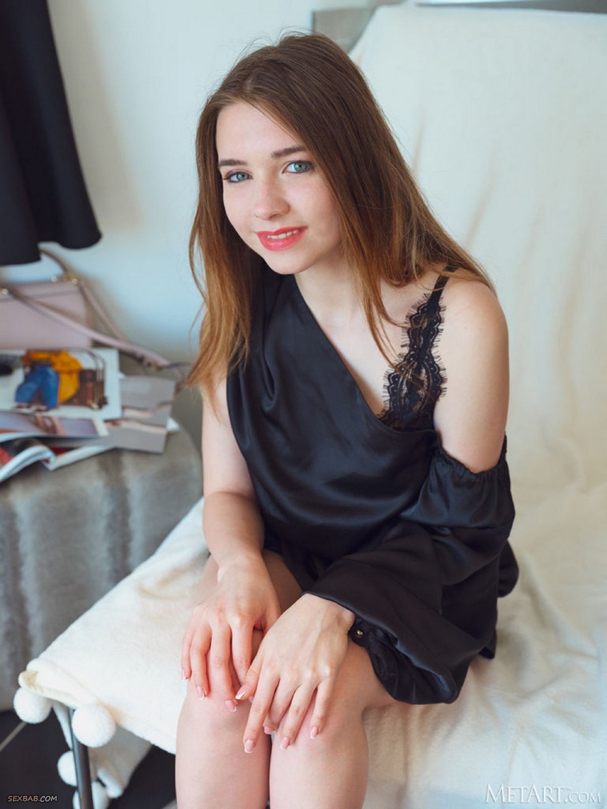 Описание: Кокетливо поправляя свое короткое платье, очаровательная скромная детка эротично играется со своими кружевными трусиками и мельком засветила бритую розовую киску. Постепенно раздевшись до гола, молодая девушка с натуральными острыми сиськами развратно позирует перед камерой всем телом, открыто демонстрируя нам свои самые интимные места.