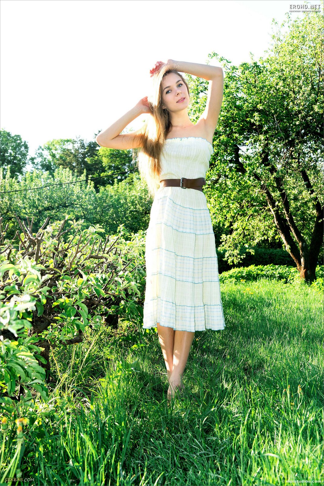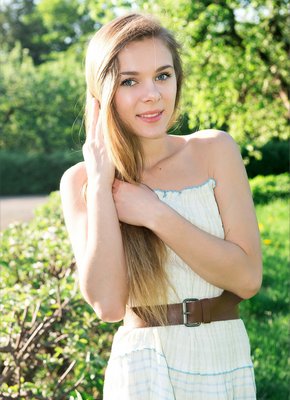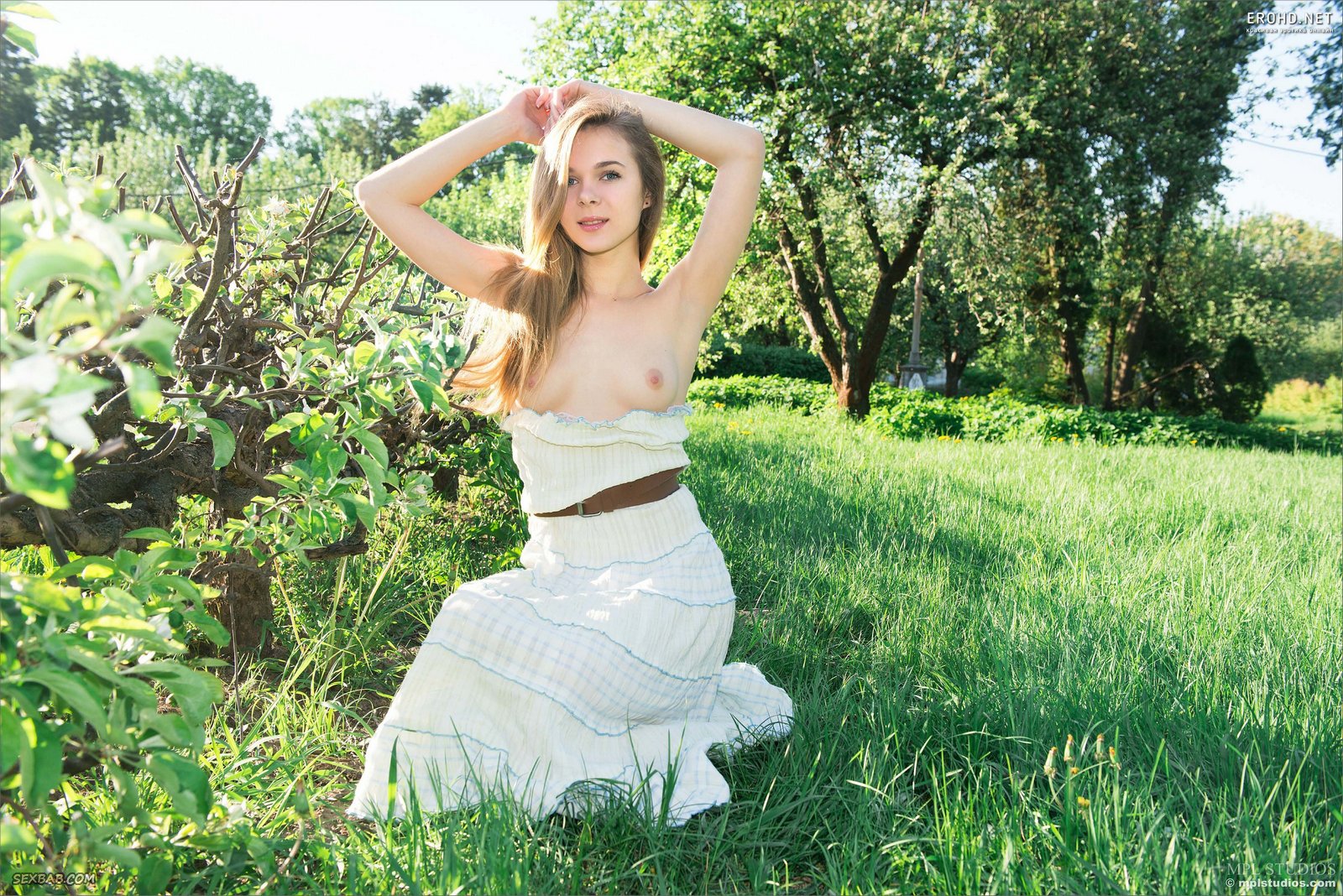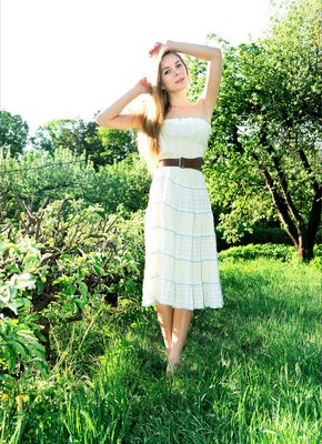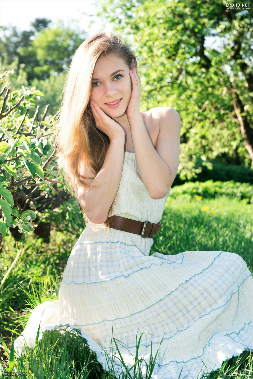 Описание: Молодая красавица без трусиков возбуждающе играется с платьем и эротично позирует на природе, постепенно оголяя свои миниатюрные сладкие прелести. Развратная кокетка с упругими натуральными титечками расслабленно лежит на зеленой траве и, широко раздвинув свои красивые ноги, крупным планом выпячивает на камеру свою гладкую пухлую киску.