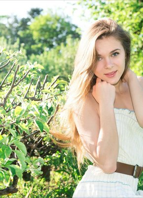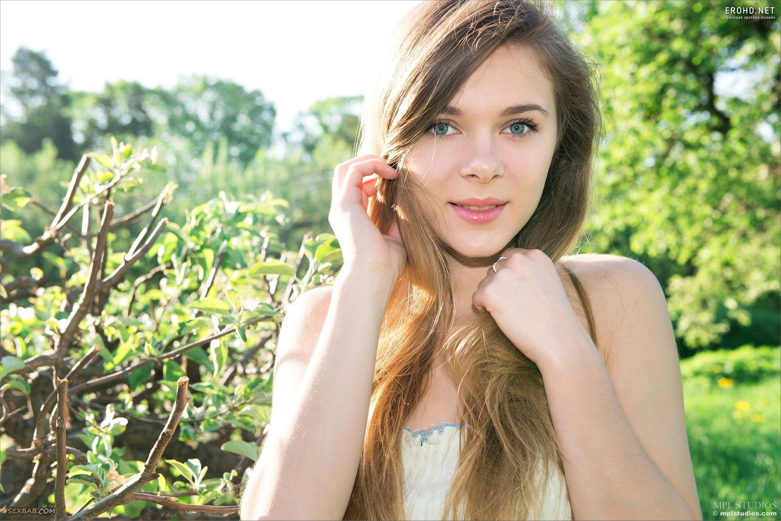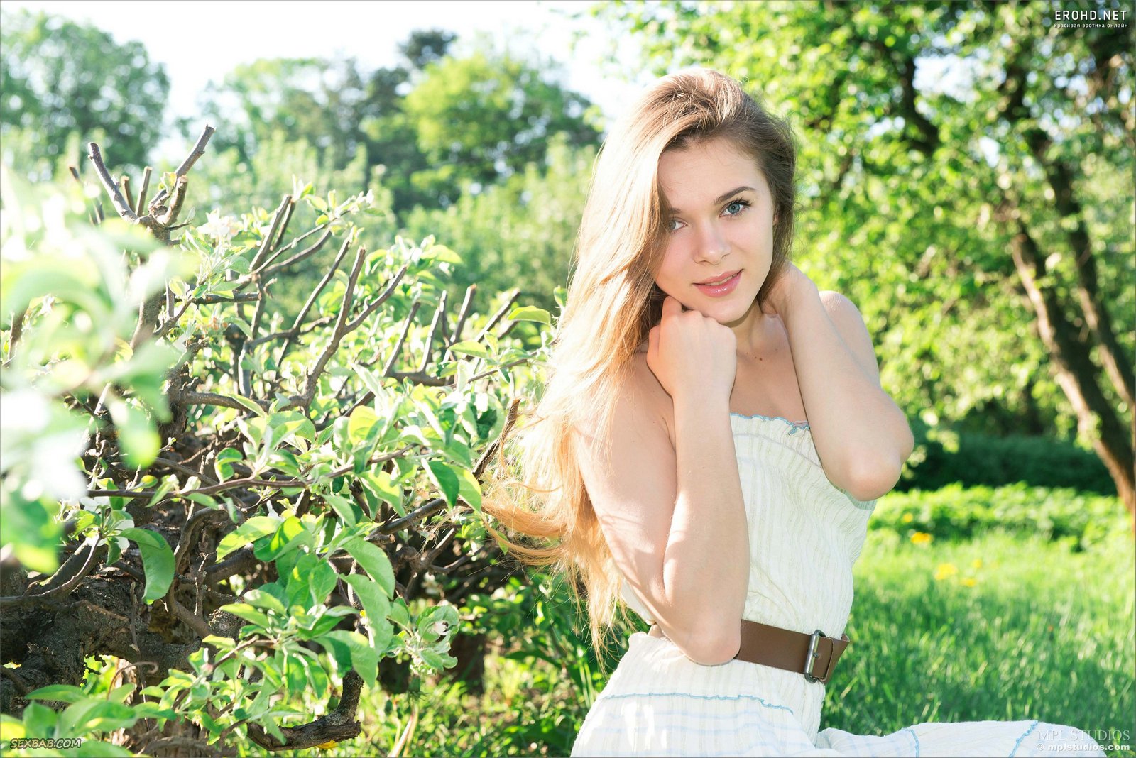 Красавица без трусиков позирует на природе