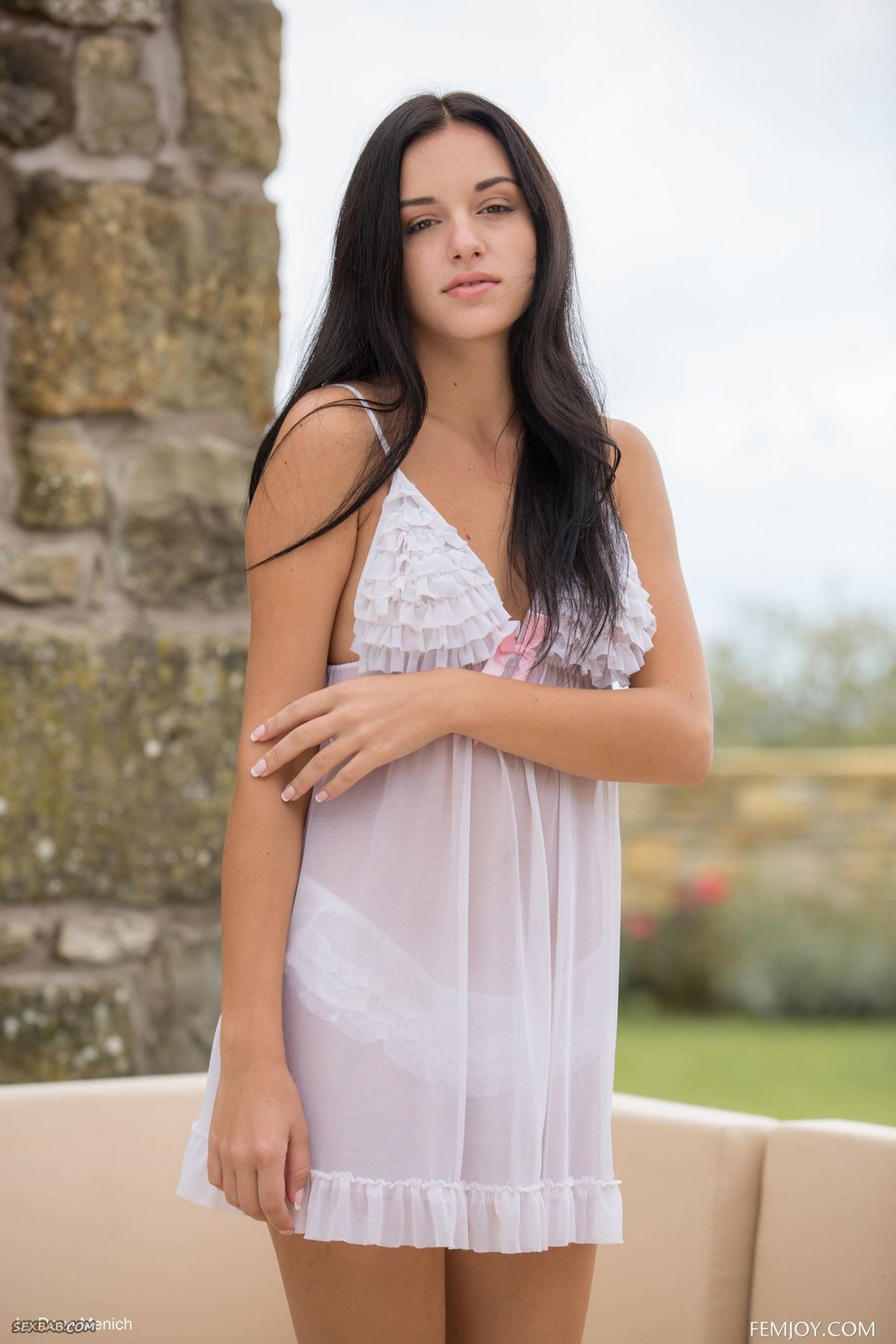 Описание: Удобно устроившись на мягком диване, молодая брюнетка в прозрачном пеньюаре постепенно сняла с себя его и кружевные трусики, оставшись перед камерой абсолютно обнаженной. Красивая девушка с сексуальной фигурой расслабленно позирует всем телом, бесстыже демонстрируя с разных ракурсов не только свою упругую попку, но и крупным планом засвечивает голую промежность с розовой нежной киской.