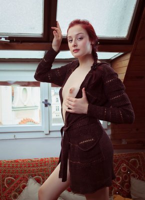 Бледная рыжуха раздевается на чердаке