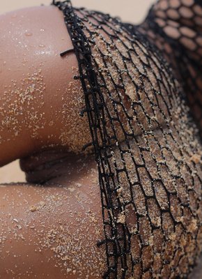 Описание: Стройная темнокожая азиатка в бикини и сетчатой накидке эротично позирует на пустом пляже, чувственно изгибаясь всем телом. Постепенно сняв с себя миниатюрный купальник, экзотическая красавица с упругими сиськами расслабленно ложится на горячий песок и выставляет на показ красивую попку с сочной киской.