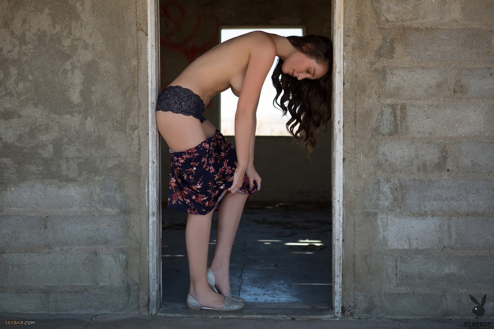 Описание: Симпатичная красавица с худенькой талией, гуляя по заброшенному дому и эротично позируя в какой-то момент начинает медленно раздеваться, снимая платье и кружевные трусики. А уже совершенно голая девушка, откровенно и возбуждающе демонстрирует маленькую упругую грудь и гладко выбритую письку.