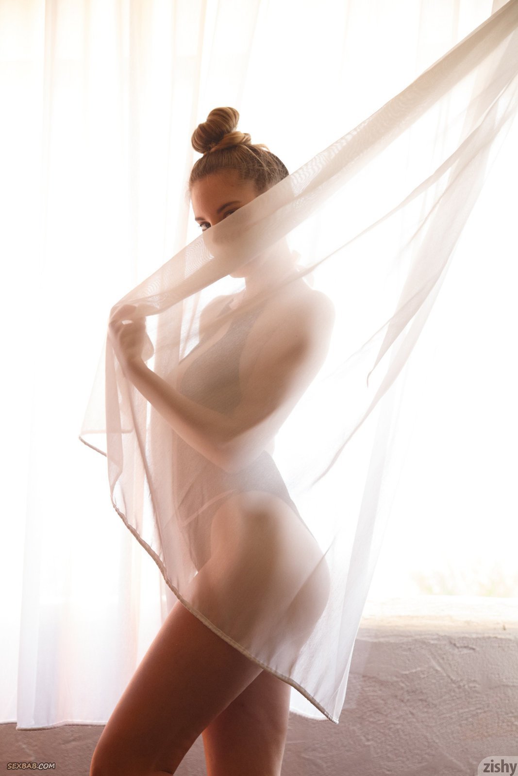 Описание: Молодая красотка со стройной фигурой и большими сиськами, нарядившись в прозрачный купальник в виде боди, начинает эротично позировать в спальне на кровати. Ложась на животик и читая журнал, очаровательная крошка как бы невзначай обнажила перед нами свои сочные натуральные буфера с сосками, а прогибаясь раком выставляла на показ ягодицы.