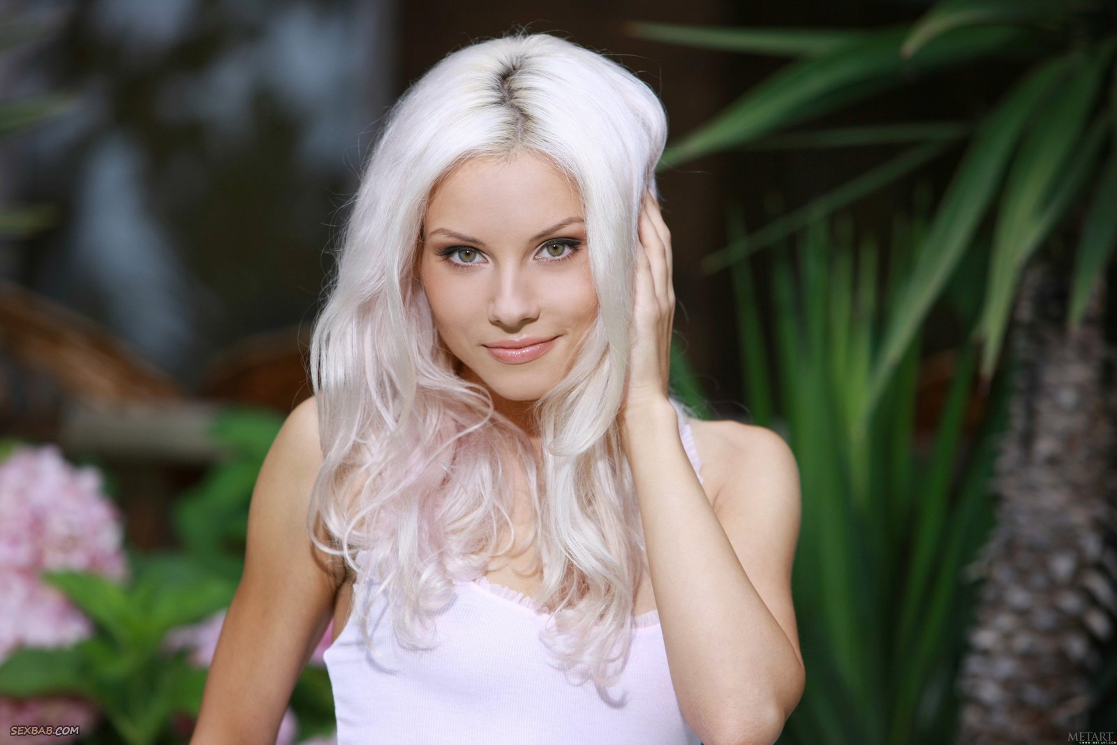 Описание: Эротично извиваясь всем телом среди экзотических растений, нежная блондинка с миниатюрными титечками медленно снимает с себя одежду и, соблазнительно лежа обнаженной на одеяле, с самых выгодных ракурсов раскрывает перед камерой свою бритую письку с темными половыми губками.