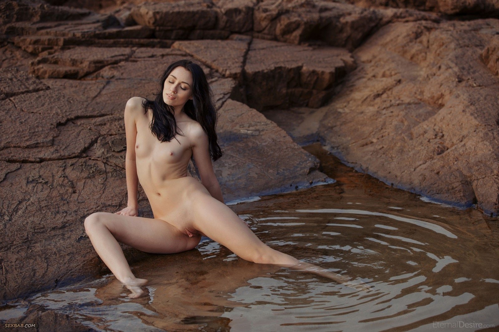 Описание: Оказавшись рядом со скалами и протекающим там ручьём, высокая брюнетка худощавого телосложения с маленькими сиськами и в кофточке принимается эротично позировать. В дальнейшем очаровательная худенькая брюнетка забирается в воду и ложась на спину демонстрирует нам свою маленькую грудь с торчащими сосочками и гладко выбритую письку, не забывая в будущем перевернутся на бок и выставить задницу.
