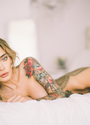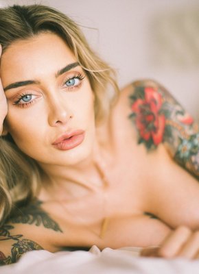 Грудастая блондинка исколотая татухами