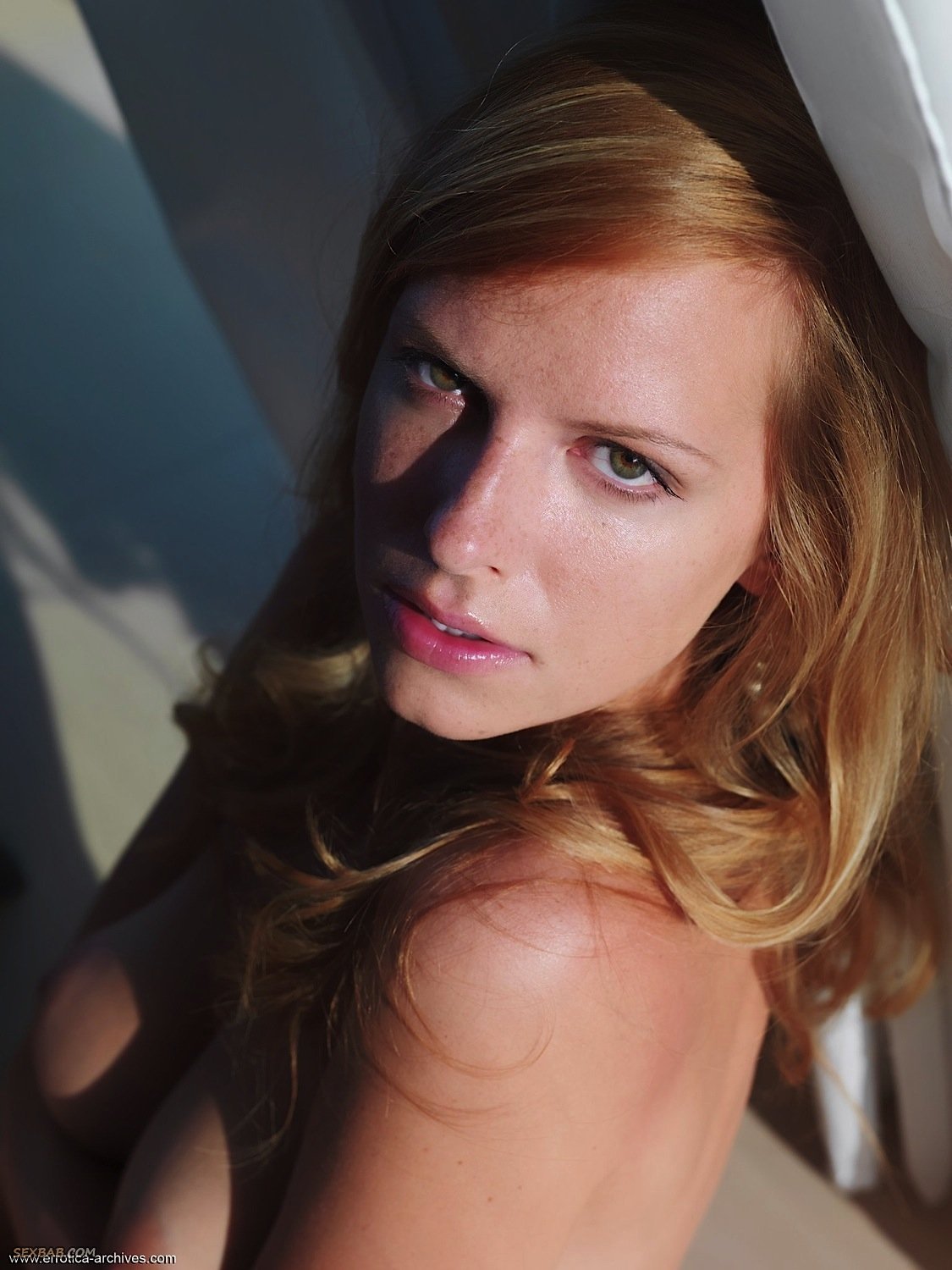 Описание: Устроив фото сессию в загородном доме, секси дамочка со светлыми волосами эротично позирует и медленно раздевается догола. Обнаженной милашка располагается на полу и поглаживая роскошные волосы руками, демонстрирует нам свои натуральные классные буфера с гладко выбритой писькой, а так же и другие прелести.