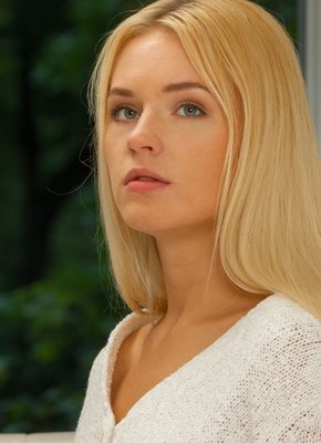 Описание: Расположившись на кровати, сексуальная блондинка с красивой внешностью в процессе медленно снимает кружевные белые трусики и кофту. Оголившись, стройная девушка с натуральной грудью прогибается раком и раздвигает промежность сидя на коленках, позволяя нам увидеть бритую письку и упругую попку.