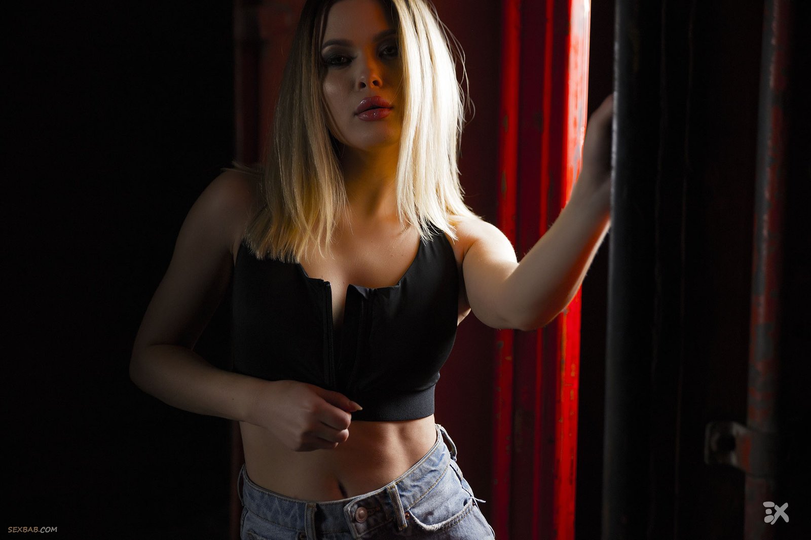 Описание: Сексапильная грудастая соска с пухлыми губками и шикарными формами сладко позирует и не спеша снимает с себя короткие джинсовые шорты с топиком, а затем и трусики. Таким образом блондинка засвечивала свою соблазнительную бритую письку и аккуратные упругие сиськи внушительного размера с набухшими сосками.