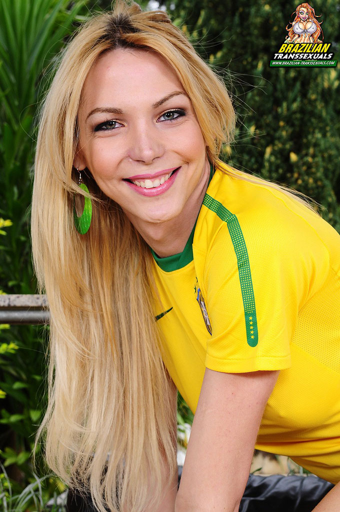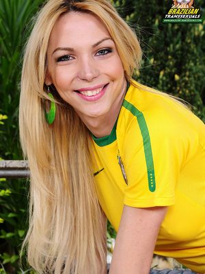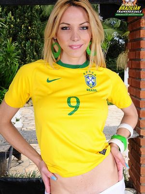 Сисястая блондинка в полосатом платье пытается удовлетвориться